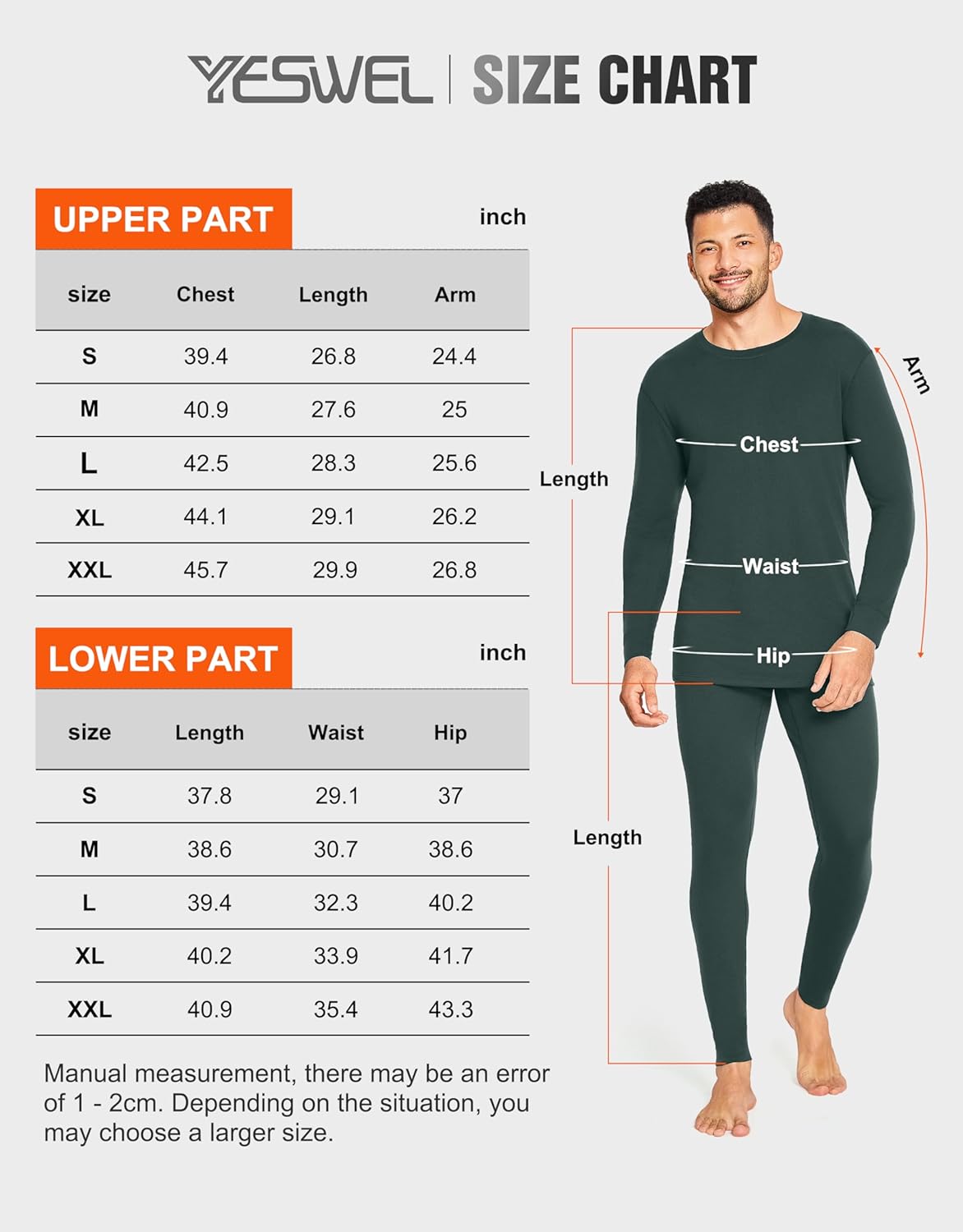 YESWEL Men’s thermal underwear with inner fleece, heat retention, tight fit, high elasticity, materials for thermal underwear set: 100% wool, colour: black, grey, sizes: M, L, XL, XXL, 3XL