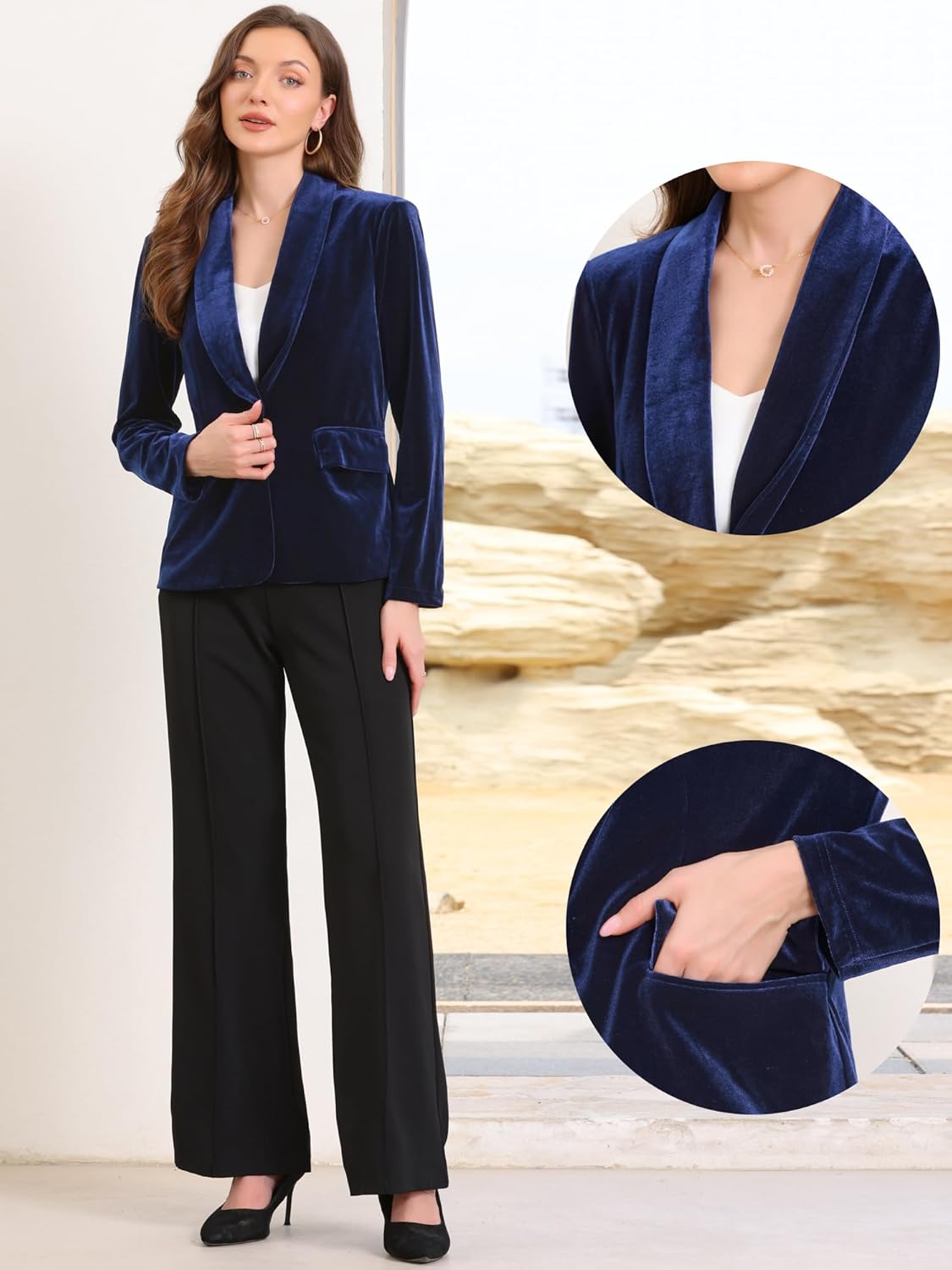 Allegra K Women’s Velvet Shawl Collar Long Sleeve Button Down Business Cocktail Suit Jacket