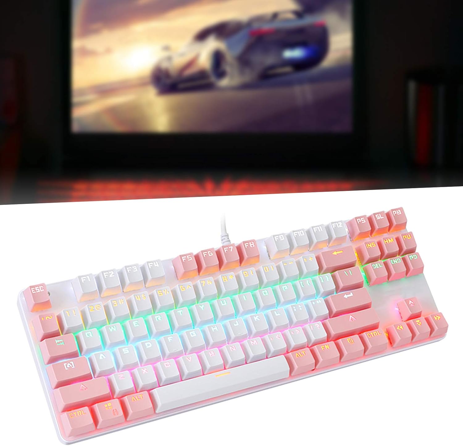 Cablebound USB Gaming Keyboard with Multimedia Keys, 2 Colours Gaming ABS Mechanical Keyboard for Alemeine Desktop and Notebook Computers (White and Pink)