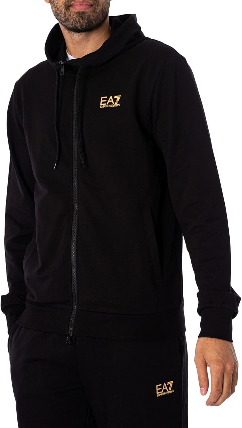 EA7 Men’s Zip Hooded Tracksuit, Black, S
