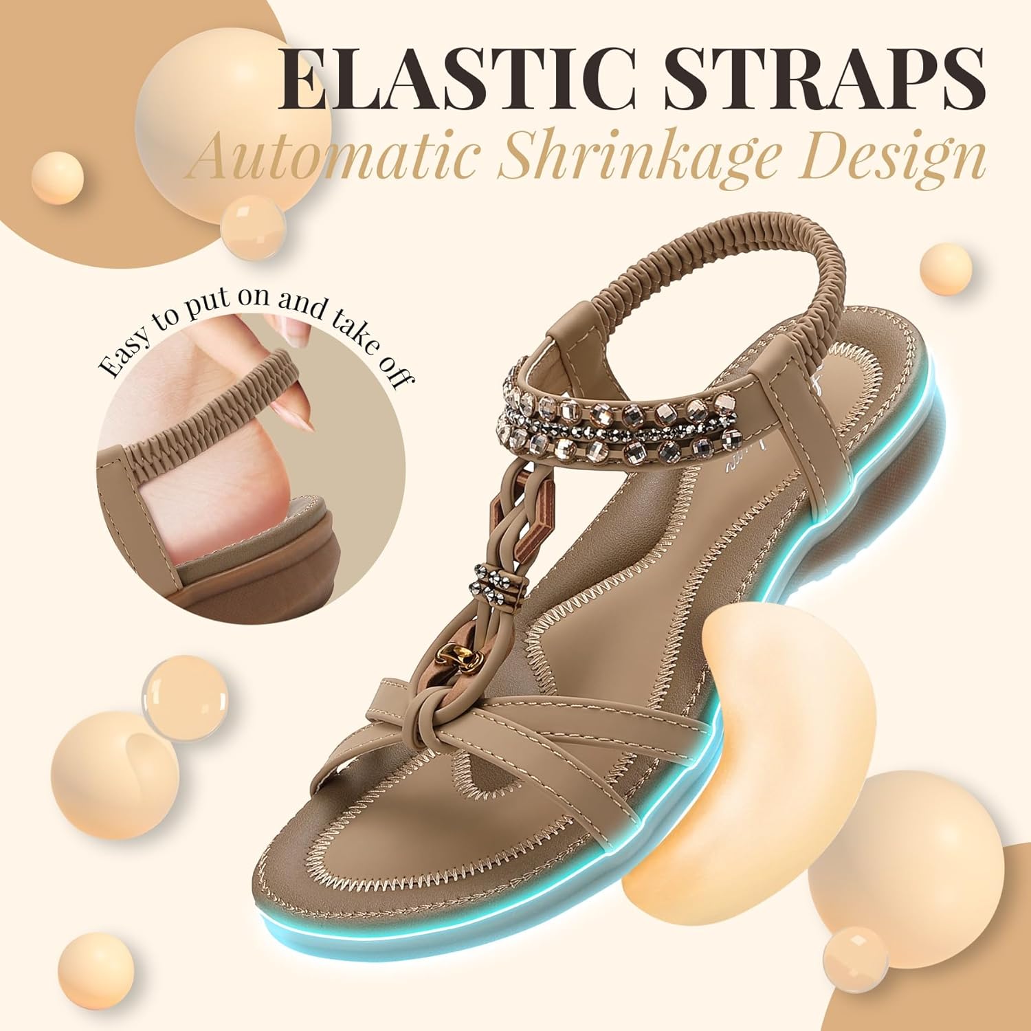 Littleplum Womens Sandals Arch Support Slingback Sandals Summer Beach Shoes Ankle Strap Thong Elastic Flat Sandals