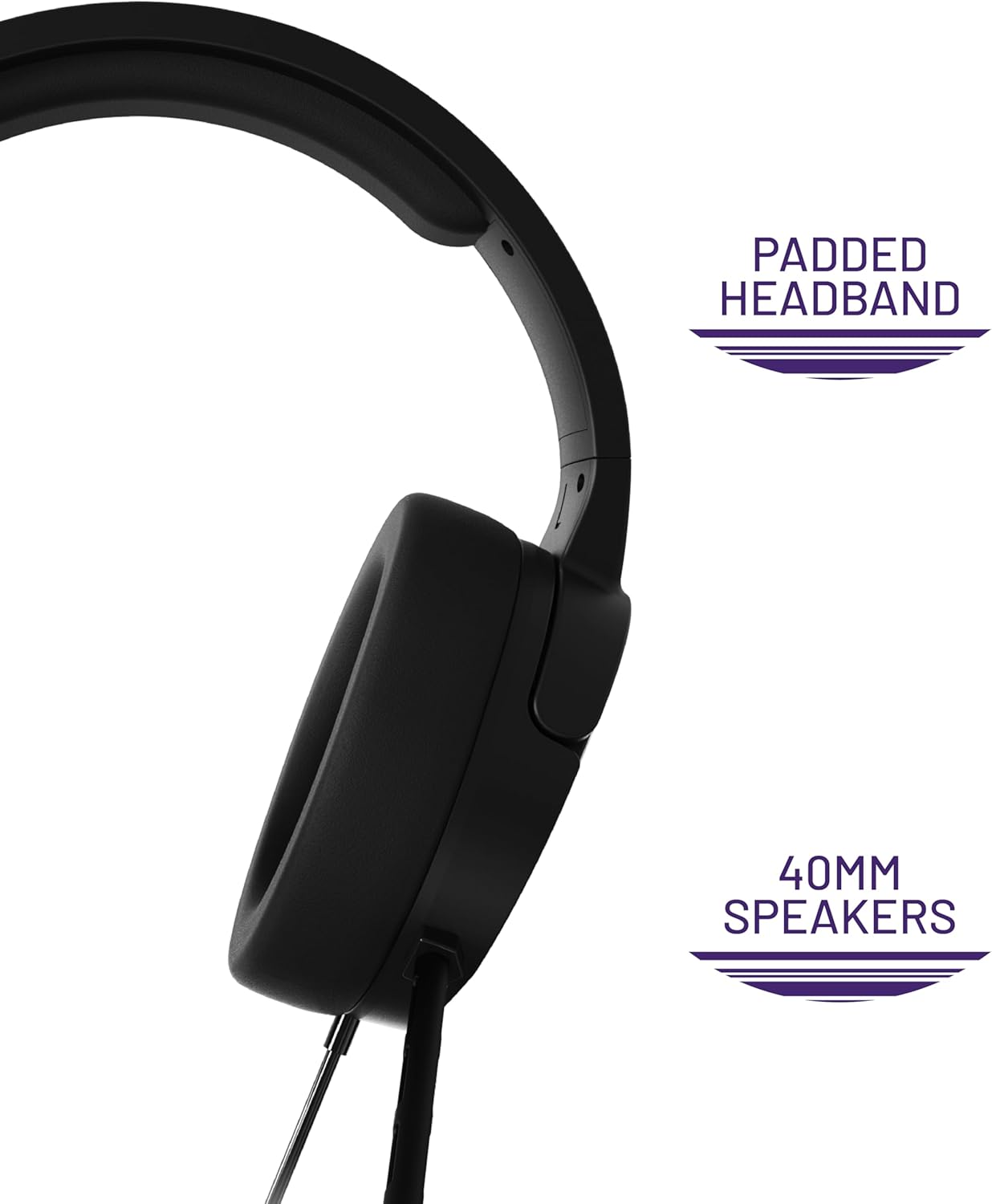 over-ear flexible, cushioned leatherette ear cups to help block out distractions and keep your head in the game