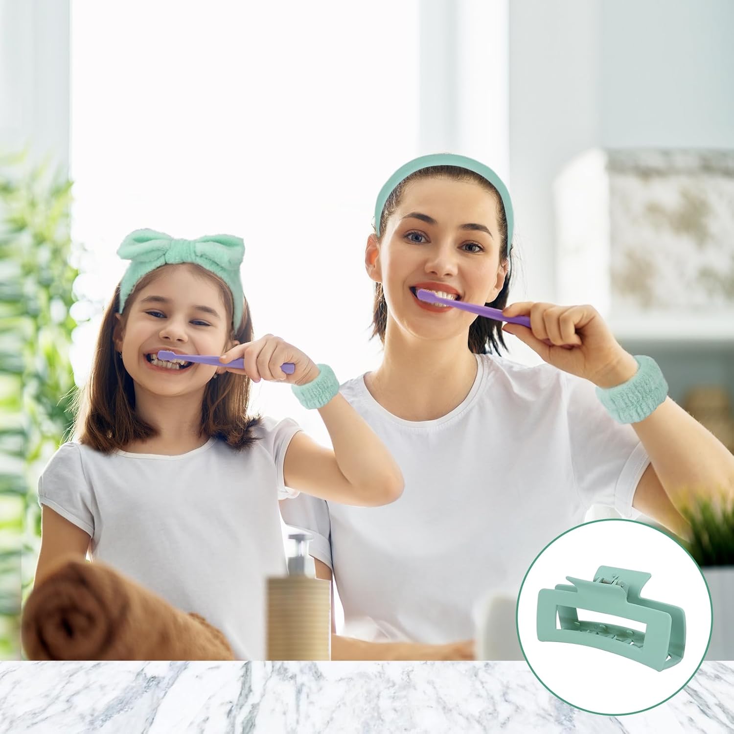 WRENYZK Pack of 5 Spa Headband for Washing Face Wristband and Hair Clips Set, Makeup Hair Band Cosmetic Headband for Women Girls Skin Care Facial Cleansing Yoga (Green)